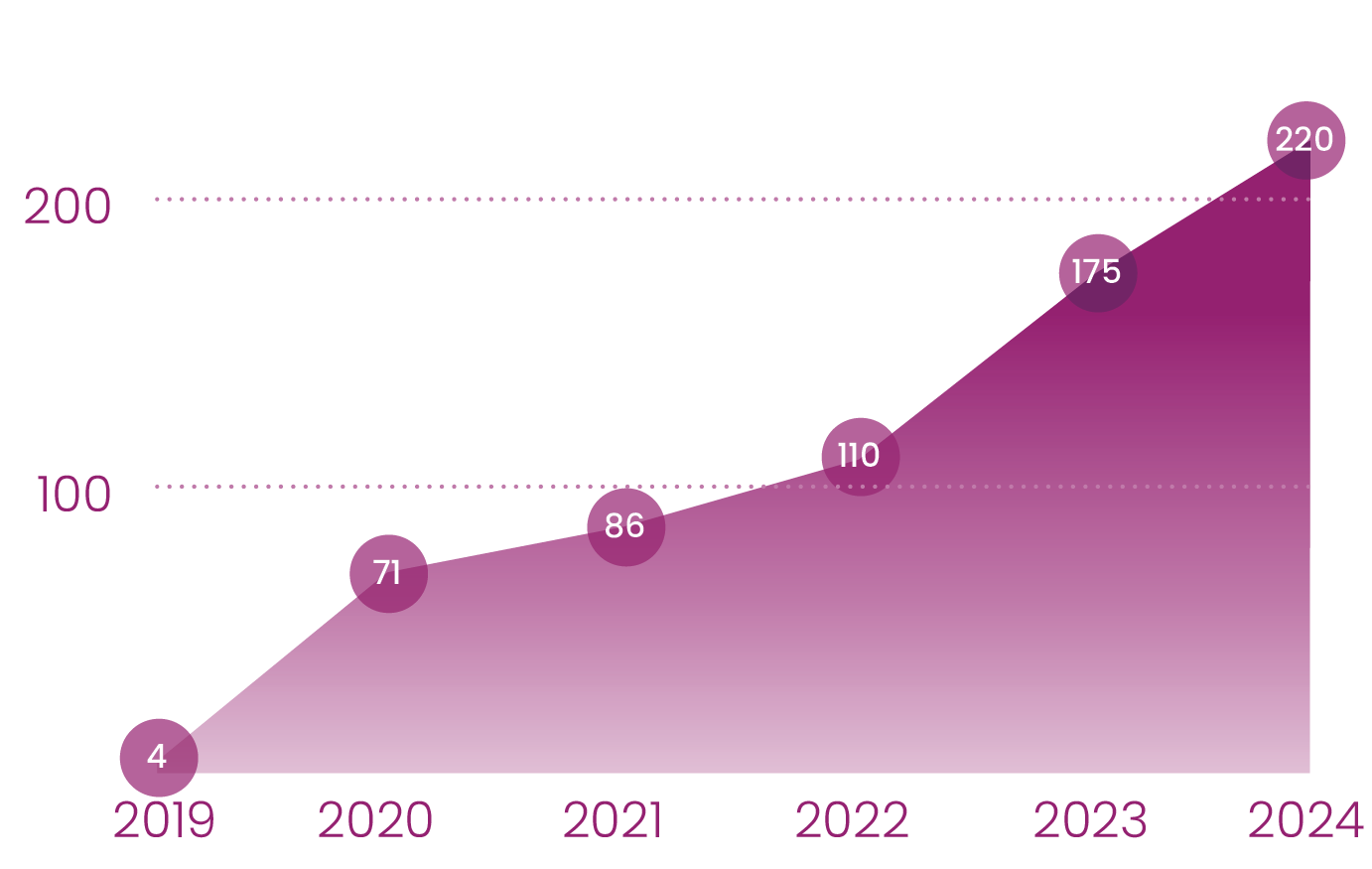 Liiketoiminnan kasvaessa myös henkilöstön määrä on kasvanut keskimäärin 43 henkilöllä per vuosi.