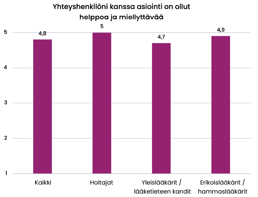 - Jos arjessa tulee eteen ongelma (esim. järjestelmä tai käytäntö), yhteyshenkilö reagoi nopeasti ja hoitaa asian, jotta työntekijä voi keskittyä potilaisiin.